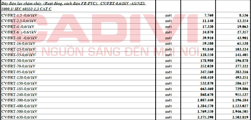– BẢNG GIÁ CÁP ĐIỆN CADIVI 06/10/2024