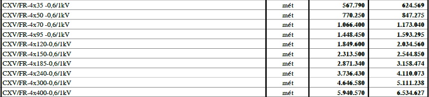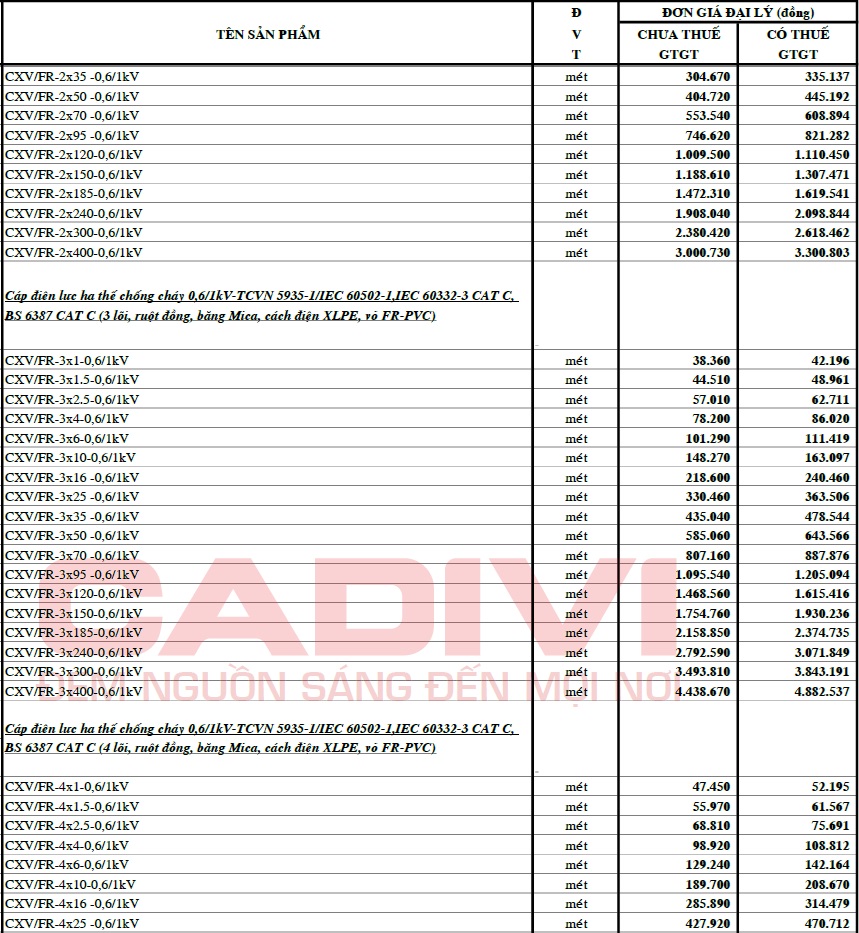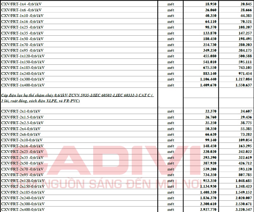 – BẢNG GIÁ CÁP ĐIỆN CADIVI 06/10/2024