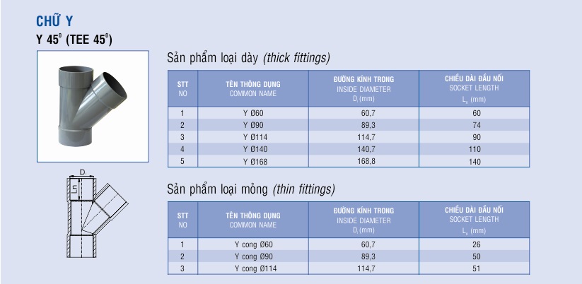 | Chữ Y PVC Minh Hùng 114 D | cái | 214.280 |