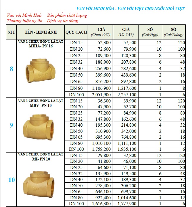 Đại lý van 1 chiều đồng lá lật Minh Hòa