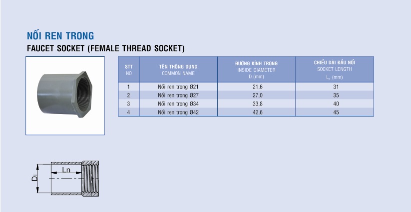 | Nối ren trong PVC Minh Hùng 42 D | cái | 6.710 |