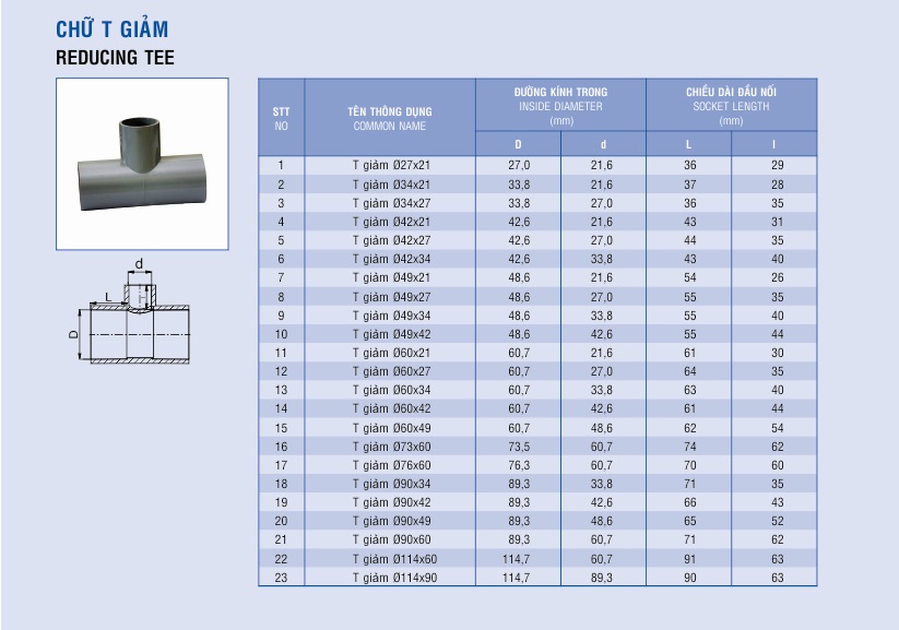 | Tê giảm PVC Minh Hùng 49 x 34 D | cái | 18.150 |