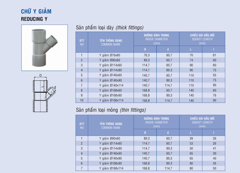 | Chữ Y giảm PVC Minh Hùng 114 x 60 D | cái | 167.970 |
